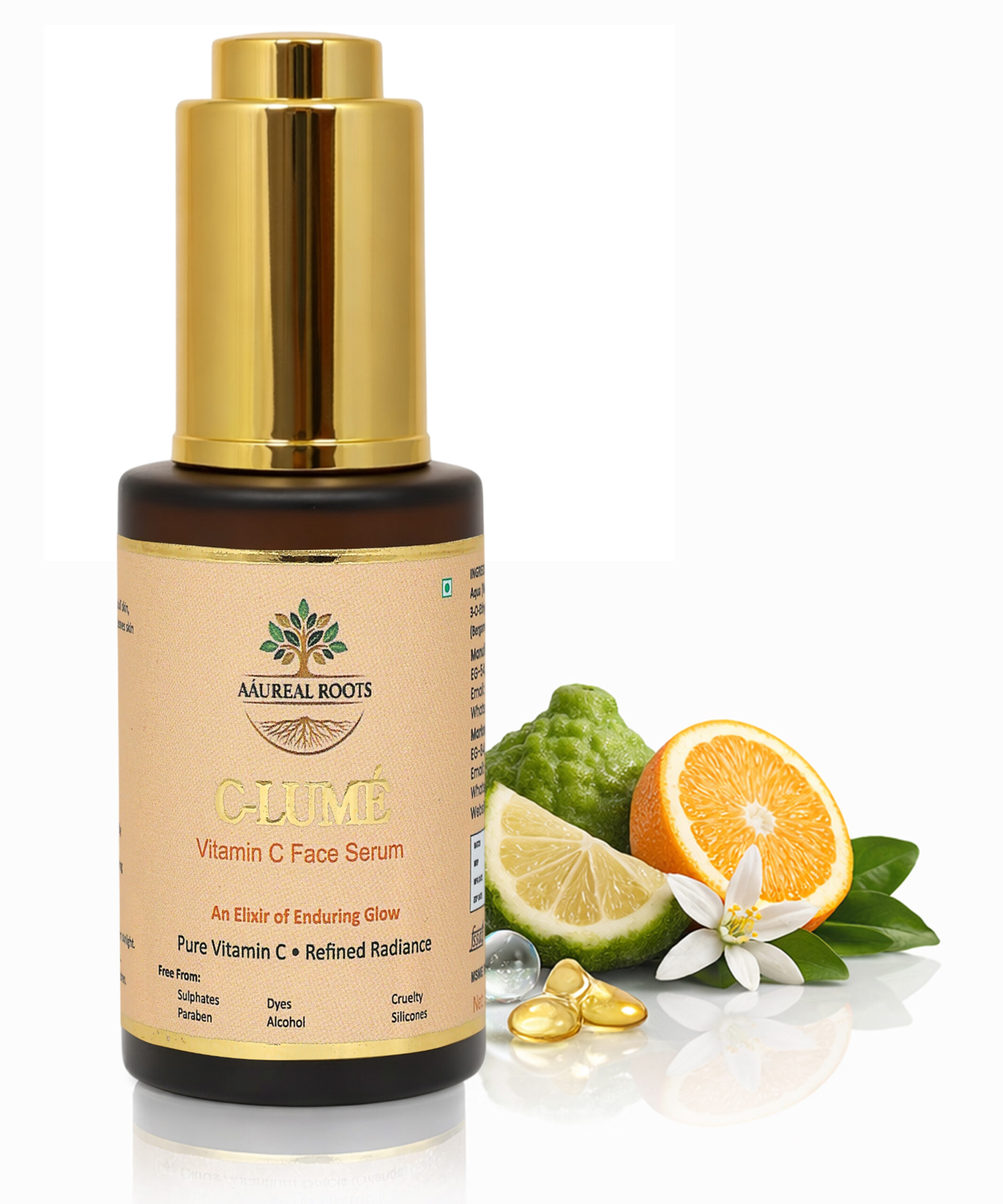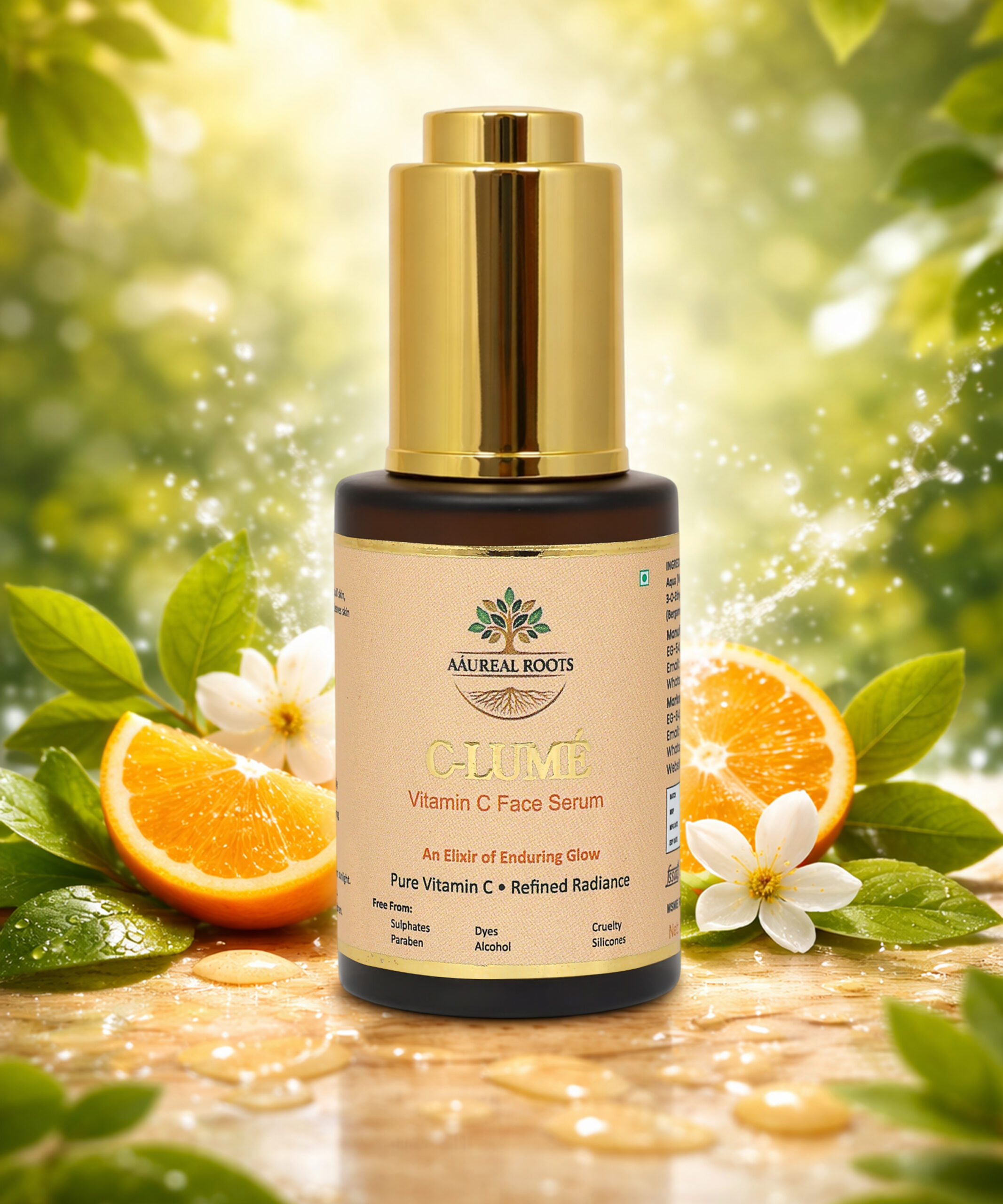 Aáureal Roots C-Lume Vitamin-C Face Serum is a fast-absorbing, non-sticky formulation designed to boost radiance while supporting skin hydration and resilience. Enriched with Ethyl Ascorbic Acid, Sodium Hyaluronate, and botanical citrus essential oils, it helps improve skin clarity, enhance brightness, and leave the skin soft, plump, and refreshed.