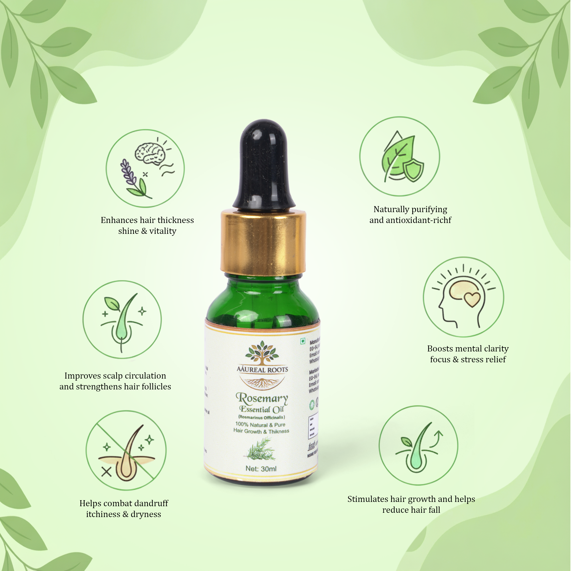 Its fresh, herbaceous aroma stimulates the mind while its powerful antioxidants and anti-inflammatory properties help maintain a healthy scalp environment. Ideal for hair care, aromatherapy, massage, and holistic wellness routines.