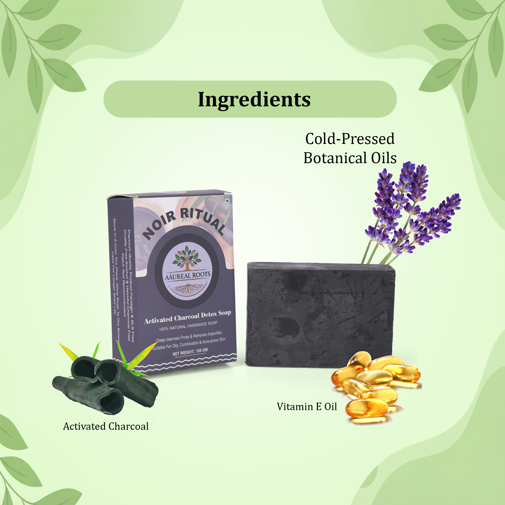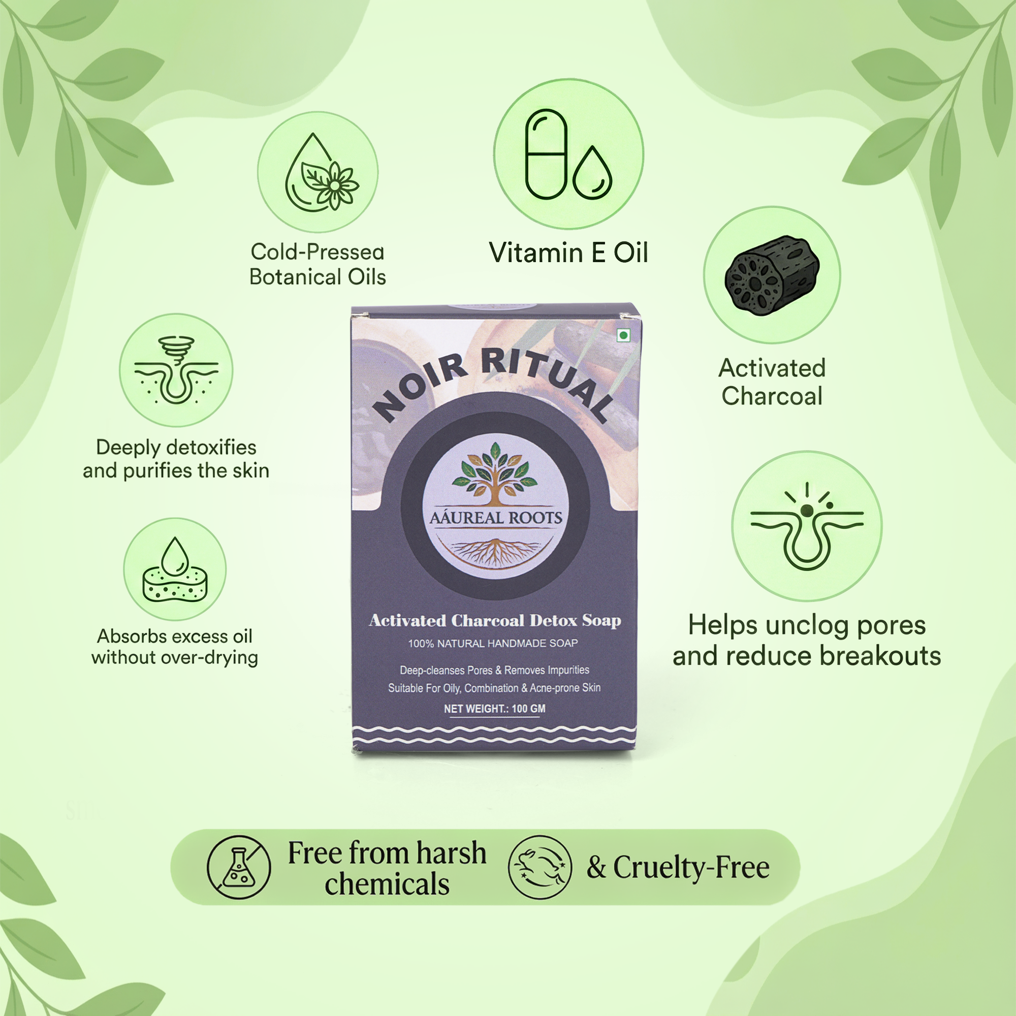 Noir Ritual Activated Charcoal Soap is a luxurious daily cleansing bar designed to combat pollution, excess oil, and build-up. Infused with Activated Charcoal, this soap works like a magnet to pull out toxins, dirt, and impurities trapped deep within pores.